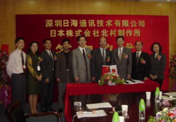 2004年4月13日,公司与日本株式会社北村制作所就户外一体化机房的设计、生产、销售和服务在米兰·milan智能签订了合作协议,共同合资组建深圳北村米兰·milan机房技术有限公司,并举行了隆重的签字仪式。公司周展宏董事长、王文生总裁、杨飞董事、机房事业部负责人孟庆光和日本北村制作所北村泰作...